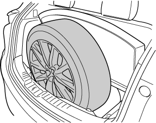 Place the flat tire in the luggage compartment so that it leans against the luggage board.