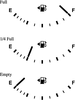 The display indicating a quarter or less remaining fuel has more segments to show the remaining fuel level in greater detail.