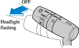 To flash the headlights, pull the lever fully towards you (the headlight switch does not need to be on). The headlight high-beam indicator light in the instrument cluster illuminates simultaneously. The lever will return to the normal position when released.