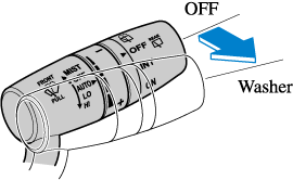 If the windshield washer is turned on when the windshield wipers are not operating, the windshield wipers operate a few times.