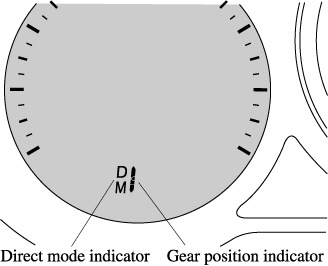 While in direct mode, the D and M indication illuminate and the gear position in use is illuminated.