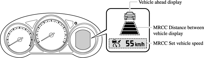 The setting status and operation conditions of the Mazda Radar Cruise Control (MRCC) system are indicated in the multi-information display or the active driving display (with active driving display).