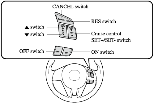 If the OFF switch is pressed to cancel the Mazda Radar Cruise Control (MRCC), the system does not return to the previously set speed even if the RES switch is pressed.