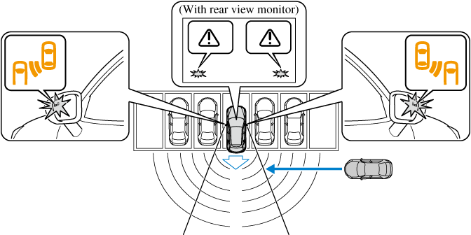 The Rear Cross Traffic Alert (RCTA) warning indication in the rearview monitor also synchronizes with the Blind Spot Monitoring (BSM) warning indicator light on the door mirrors.