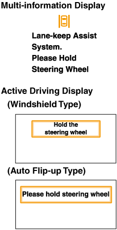 If the driver takes his or her hands off the steering wheel (not holding the steering wheel), the warning sound is activated and an alert is indicated in the multi-information display or the active driving display.