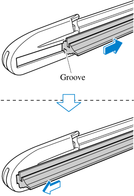 5. Insert the end of the new blade rubber into the groove of the blade holder until it contacts the end of the blade holder.