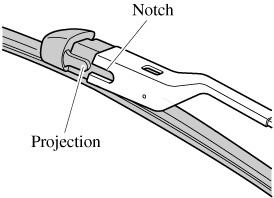 • Do not bend the blade rubber unnecessarily when replacing it. Otherwise, the metal stiffener in the blade may deform and the windshield wiper operation may be adversely affected.