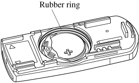 • If the rubber ring detaches, reattach it before inserting a new battery.