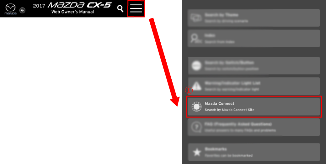 The Mazda Connect Website is displayed when Mazda Connect is selected from the menu.