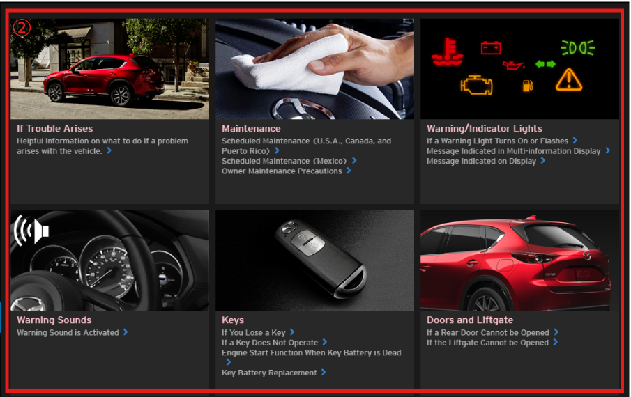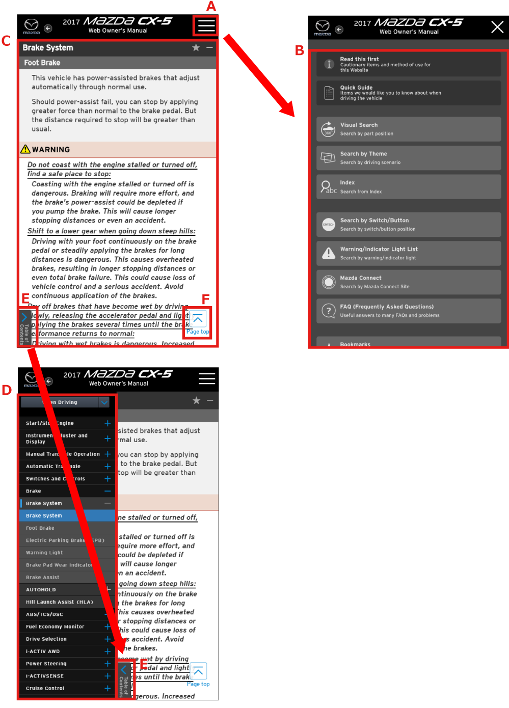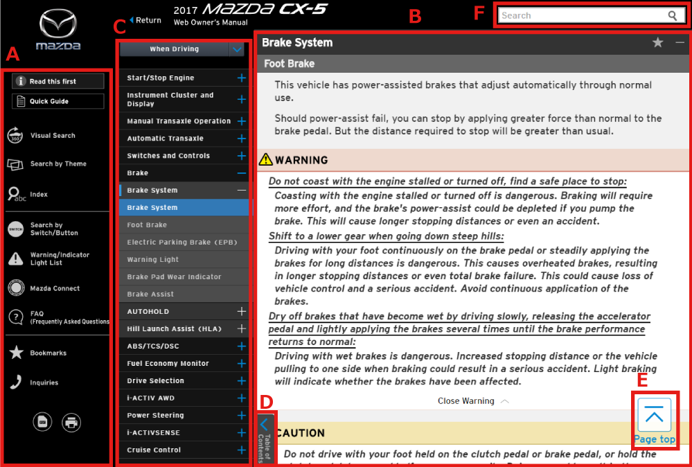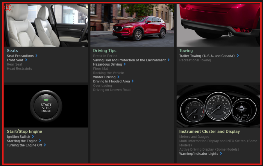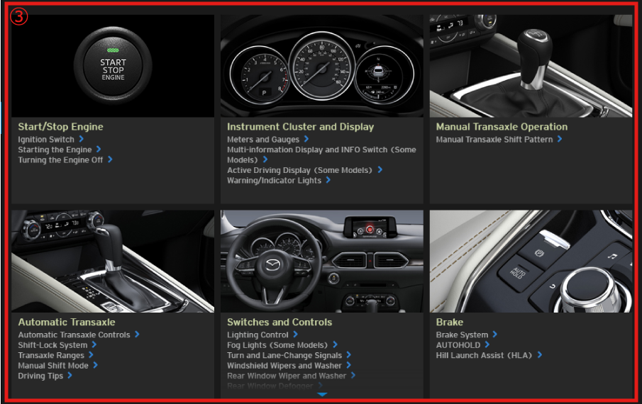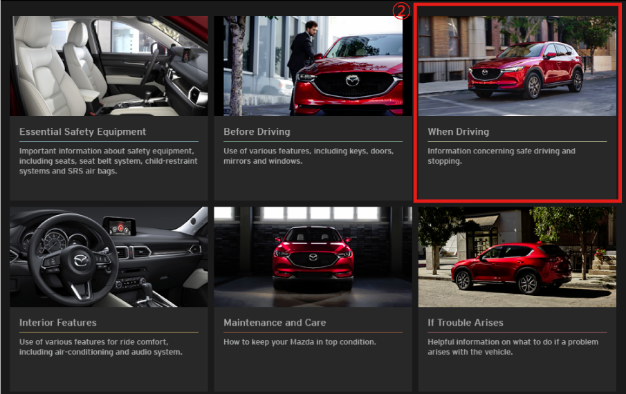 Illustrations complement the text to best explain how to enjoy your Mazda. By reading this Web owner's manual, you can learn about the features, important safety information, and driving under various road conditions.
