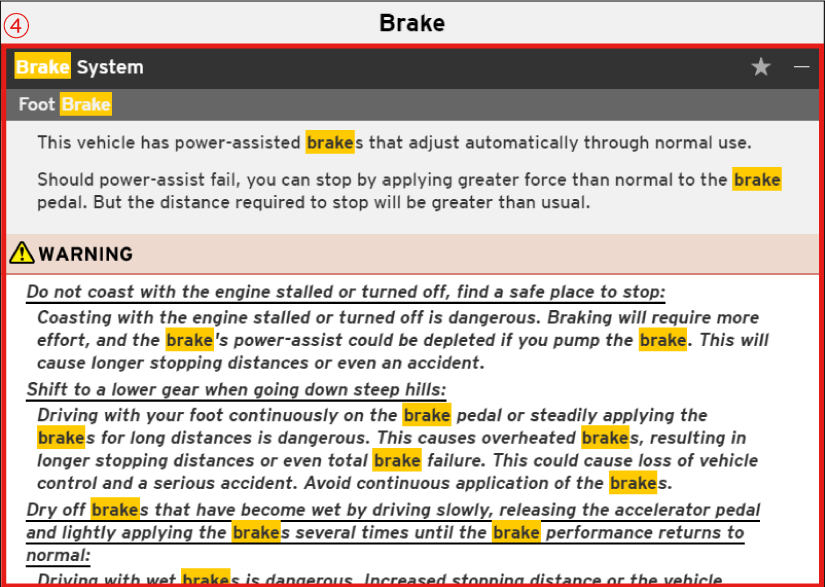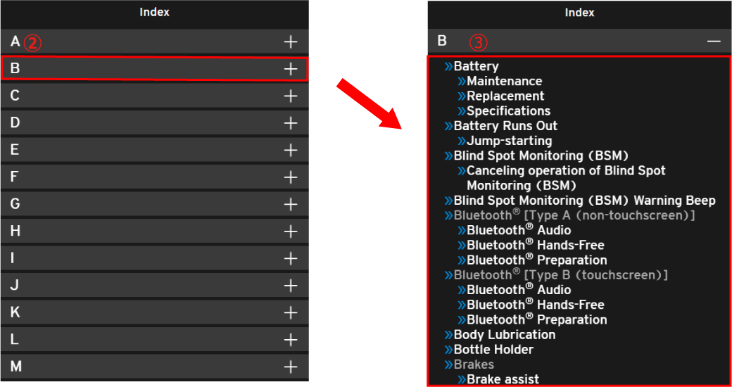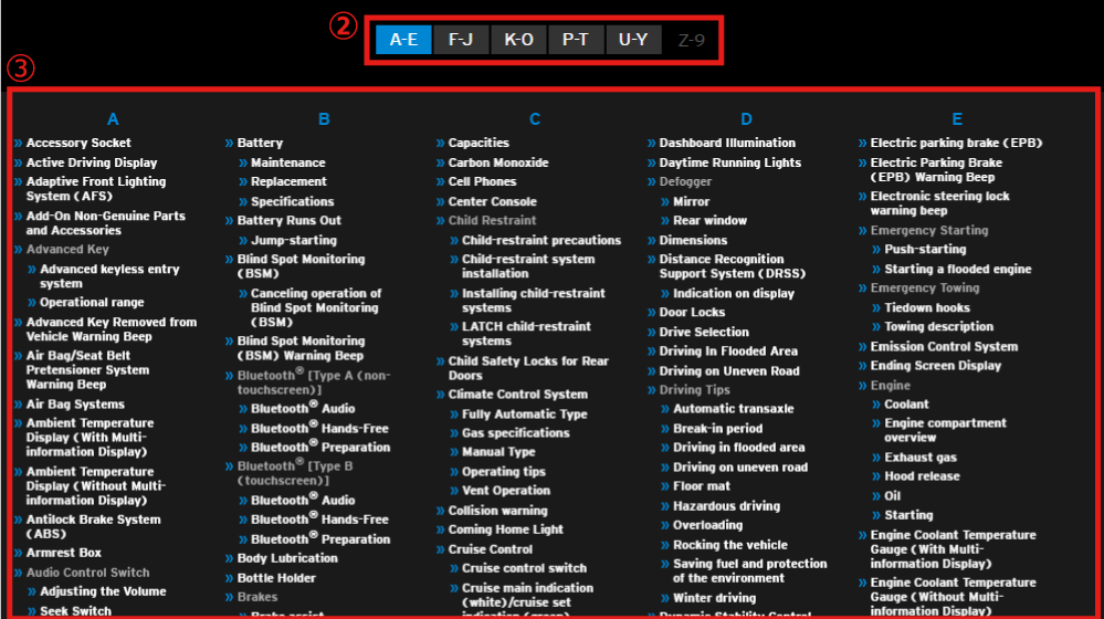 You can search for the information you need by selecting the scenario in which you are driving the vehicle.
