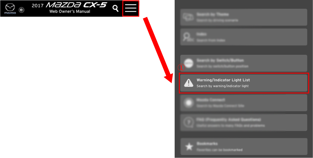 You can search for the information you need by clicking on a warning/indicator light displayed in the instrument cluster.