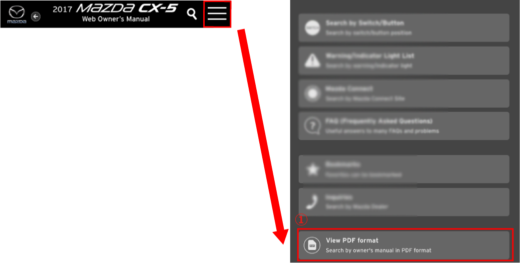 Owner's manuals in PDF format are displayed when selecting (View PDF format) from the menu.