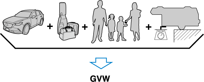 GCWR (Gross Combination Weight Rating) is the maximum allowable weight of the vehicle and the loaded trailer - including all cargo and passengers - that the vehicle can handle without risking damage. (Important: The towing vehicle's braking system is rated for operation at GVWR, not at GCWR. Separate functional brakes should be used for safe control of towed vehicles and for trailers weighing more than 1,500 lbs). The GCW must never exceed the GCWR.