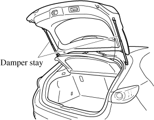 Do not modify or replace the liftgate damper stay. Consult an Authorized Mazda Dealer if a liftgate damper stay is deformed or damaged for reasons such as a collision or if there is some other problem.