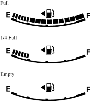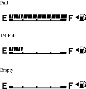 The display indicating a quarter or less remaining fuel has more segments to show the remaining fuel level in greater detail.