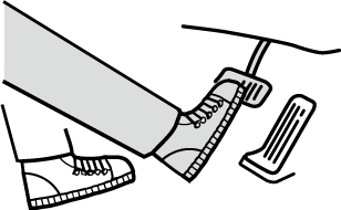 Wear shoes appropriate for driving in order to avoid your shoe contacting the brake pedal when depressing the accelerator pedal.
