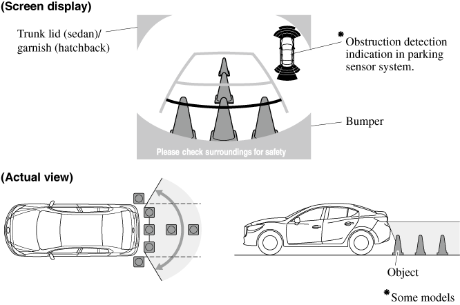 The displayable range is limited. Objects under the bumper or around the bumper ends cannot be displayed.