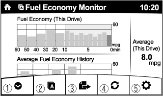 For vehicles with type B audio, the Control Status and Fuel Consumption are switched and displayed by operating each icon in the display.