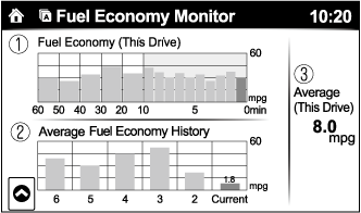After resetting the fuel economy data, “-- -” is displayed while the average fuel economy is calculated.