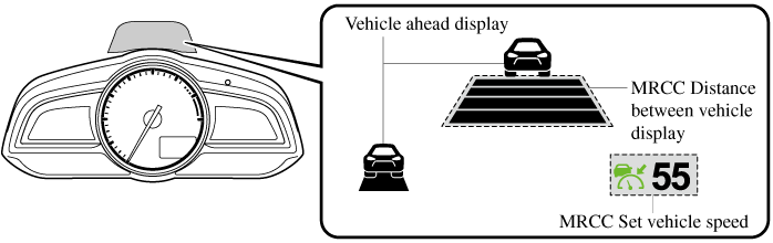 The setting status and operation conditions of the Mazda Radar Cruise Control (MRCC) system are indicated in the active driving display.