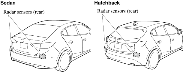 Vehicles are shipped with the direction of the radar sensors (rear) adjusted for each vehicle to a loaded vehicle condition so that the radar sensors (rear) detect approaching vehicles correctly. If the direction of the radar sensors (rear) has deviated for some reason, have the vehicle inspected at an Authorized Mazda Dealer.