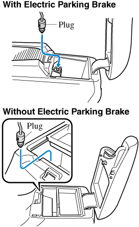 Pass the connection plug cord through the cutout of the console and insert the plug into the accessory socket.