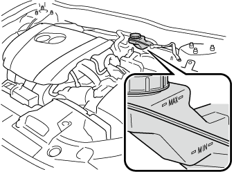Inspect the fluid level in the reservoir regularly. It should be kept between the MAX and MIN lines.