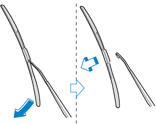 Open the clip and slide the blade assembly in the direction of the arrow.