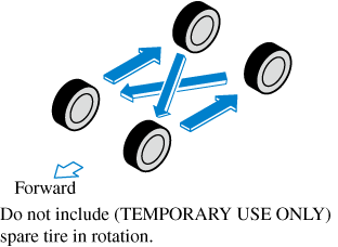 After rotation, inflate all tire pressures to specification (Search) and inspect the lug nuts for tightness.