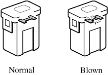 Replacing these fuses by yourself is dangerous because they are high current fuses. Incorrect replacement could cause an electrical shock or a short circuit resulting in a fire.