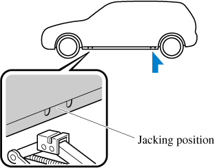 Jacking up the vehicle in a position other than the designated jack-up position or placing objects on or under the jack is dangerous as it could deform the vehicle body or the vehicle could fall off the jack resulting in an accident.