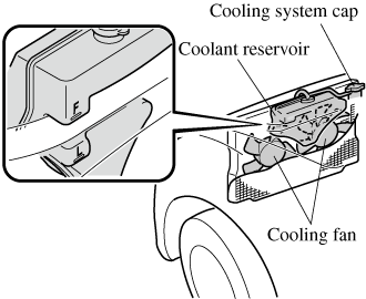 If the cooling fan does not operate while the engine is running, the engine temperature will increase. Stop the engine and call an Authorized Mazda Dealer.