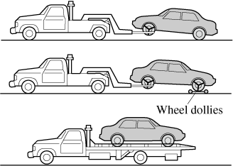 A towed vehicle usually should have its drive wheels (front wheels) off the ground. If excessive damage or other conditions prevent this, use wheel dollies.
