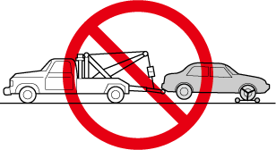 Do not tow the vehicle pointed backward with driving wheels on the ground. This may cause internal damage to the transaxle.