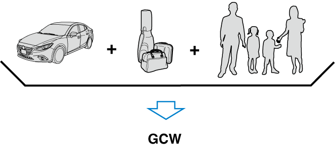 GCW (Gross Combination Weight) is the weight of the loaded vehicle (GVW).