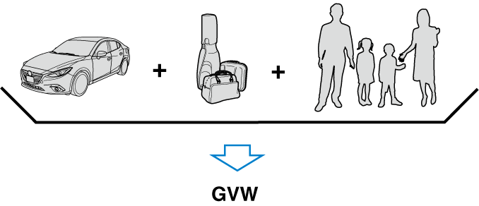 GAW (Gross Axle Weight) is the total weight placed on each axle (front and rear) - including vehicle curb weight and all payload.