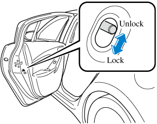 If you slide the child safety lock to the lock position before closing that door, the door cannot be opened from the inside. The door can only be opened by pulling the outside handle.