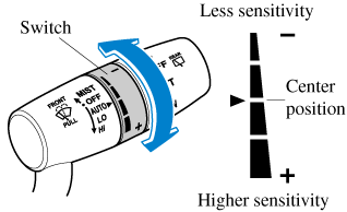 From the center position (normal), rotate the switch upward for higher sensitivity (faster response) or rotate it downward for less sensitivity (slower response).