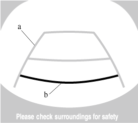 The guide lines on the screen are fixed lines. They are not synced to the driver's turning of the steering wheel. Always be careful and check the area to the vehicle's rear and the surrounding area directly with your eyes while backing up.