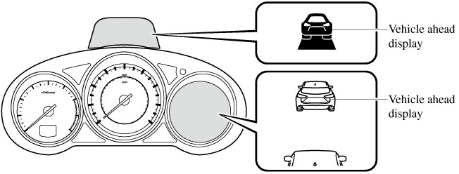 The Distance Recognition Support System (DRSS) operation status is indicated in the active driving display or multi-information display. Regarding malfunctions, check the vehicle conditions or have it inspected by an Authorized Mazda Dealer according to the content of the displayed message.