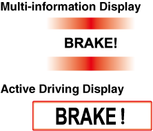 If your vehicle rapidly closes in on the vehicle ahead because the vehicle applies the brakes suddenly while you are traveling in headway control, the warning sound activates and the brake warning is indicated in the display. Always verify the safety of the surrounding area and depress the brake pedal while keeping a safer distance from the vehicle ahead. Additionally, always keep a safer distance from the vehicles behind you.