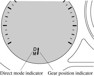 While in direct mode, the D and M indication illuminate and the gear position in use is illuminated.
