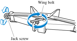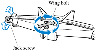 1. Insert the wing bolt into the jack with the jack screw pointing to the front and turn the wing bolt clockwise to temporarily tighten it.