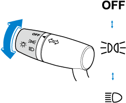 Turn the headlight switch to turn the headlights, other exterior lights and dashboard illumination on or off.