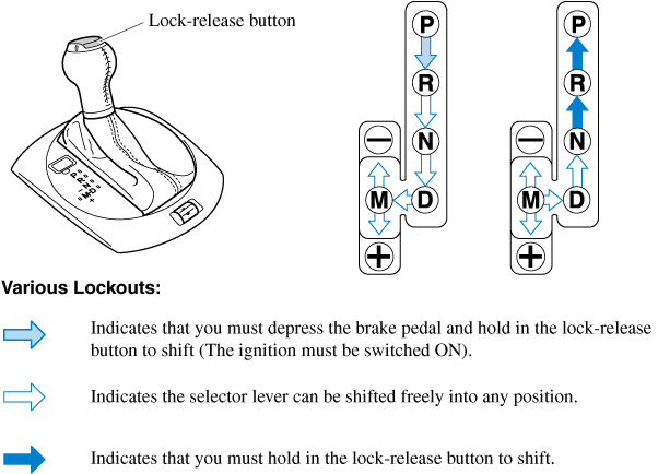 The Sport AT has an option that is not included in the traditional automatic transmission that gives the driver the option of selecting each gear instead of leaving it to the transmission to shift gears. Even if you intend to use the automatic transmission functions as a traditional automatic, you should also be aware that you can inadvertently shift into manual shift mode and an inappropriate gear may be retained as the vehicle speed increases. If you notice the engine speed going higher or hear the engine racing, confirm you have not accidentally slipped into manual shift mode (Search).