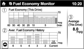 After resetting the fuel economy data, “-- -” is displayed while the average fuel economy is calculated.