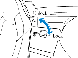 Insert the auxiliary key and turn it clockwise to lock, counterclockwise to unlock.