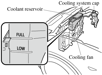If the coolant reservoir is empty or new coolant is required frequently, consult an Authorized Mazda Dealer.