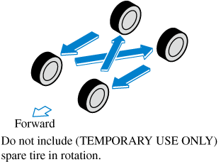 After rotation, inflate all tire pressures to specification (Search) and inspect the lug nuts for tightness.